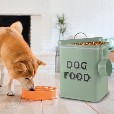 - Коробка для зберігання: Зберігайте корм для собак свіжим, сухим і недоступним для ваших чотирилапих друзів, зберігаючи його в металевій банці. Ця велика банка вміщує до 2,5 кг їжі або ласощів і має міцну металеву кришку, щоб зберігати все в безпеці. З простими ручками для перенесення та металевим черпаком, який можна прикріпити збоку для зручності використання.