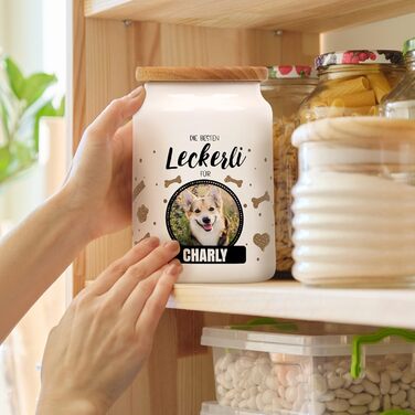 Порадуйте себе та свого улюбленця унікальною та практичною річчю – персоналізованою банкою для ласощів! Цей чудовий контейнер стане не лише місцем для зберігання смаколиків для вашого собаки чи кота, але й стильним доповненням до інтер'єру вашого дому.