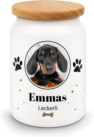 Зберігайте улюблені ласощі для вашого улюбленця у стильній та персоналізованій банці! Ця велика банка з дизайном «Лапки» стане чудовим доповненням до будь-якої кухні або місця для зберігання кормів для тварин. Завдяки можливості персоналізації фотографією та іменем вашого собаки або кота, ця банка стане унікальним та особистим аксесуаром.