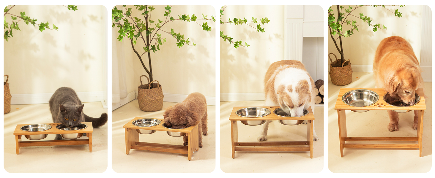 - Станції для годування виготовлені з 100 високоякісного натурального бамбука та мають хороші водонепроникні характеристики. Стійки станції подачі оснащені нековзною лапкою для запобігання виштовхування продукту. Це не дасть вихованцеві розлити миску і захистить ваш грунт. Продукція має 3 розміри на вибір, підходить для маленьких, середніх і великих собак і кішок.