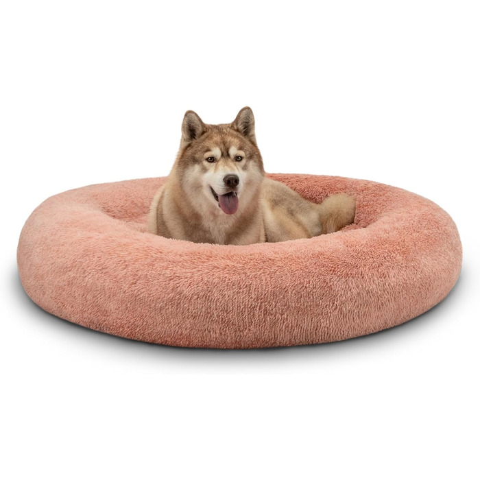 Опис lionto Лежак-донат для собак і котів, кругле флісове ліжко для домашніх тварин діаметром 120 см, м'який плюшевий лежак для великих і малих тварин, рожевий, з товстим наповнювачем