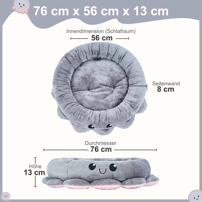Ліжко для собак Jiupety, кругле, для середніх і малих порід, у формі восьминога, 76 см, м'яке та знімне, сіре, пране