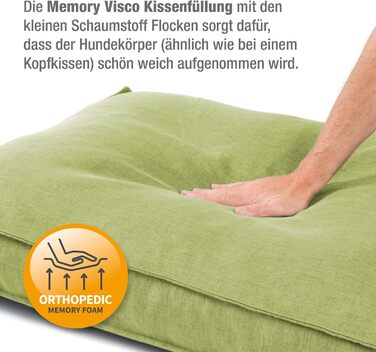Опис Ортопедична подушка для собак JAMAXX Premium з ефектом пам'яті, лляна текстура, водовідштовхувальний та знімний чохол, м'який візкоеластичний наповнювач, розмір M 90x70 см, лайм