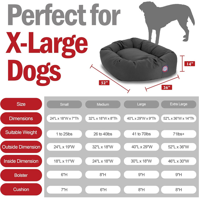 Зовнішні розміри: 101,60 см x 78,74 см, внутрішні розміри 76,20 см на 53,34 см, оббивка 30,48 см В, подушка 22,86 см В. Ідеально підходить для собак різних порід, що потребують тепла та комфорту. Оберіть сірий колір, щоб додати нотку елегантності до інтер'єру вашого дому.