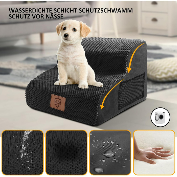 - Водонепроникний дизайн оновлення: Тканинна підкладка є водовідштовхувальною, а також захищає вашу губку від вологи. Тканинний чохол собачого сходового дивана собаки можна зняти і прати в пральній машині.Багаторазовий і більш екологічний.