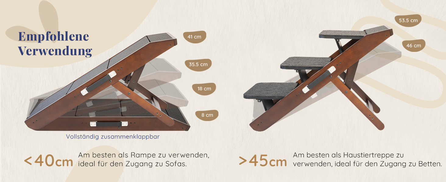 - ВИСОТА РЕГУЛЮЄТЬСЯ В МЕЖАХ 18 - 50 СМ: Відрегулюйте висоту сходів для собак для маленьких собак Диван-пандус для собак від 18 до 50 см, щоб він ідеально підходив для вашого дивана або ліжка, що робить його ідеальними сходами для собак для маленьких і великих.