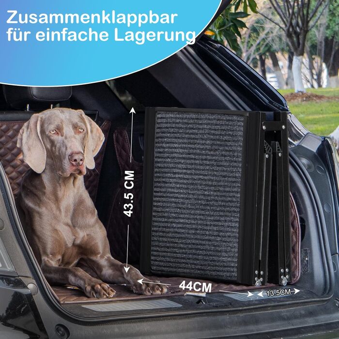 - Складна конструкціяНаш пандус для собак для автомобіля можна скласти до розміру 43 см * 33 см, що зручно для зберігання і не займає місця.