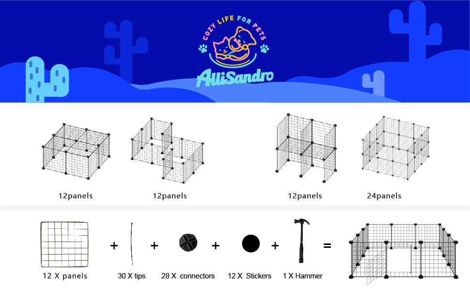 Опис ALLISANDRO універсальний манеж для домашніх тварин, чорний, 12 панелей 35x35 см, з дверцятами, для кроликів, морських свинок, гризунів та кошенят, легко збирається, металевий вольєр для дрібних тварин