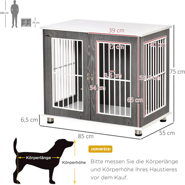 Зробіть життя вашого улюбленця комфортнішим та безпечнішим з дерев'яним будиночком-кліткою для собак PawHut. Цей стильний та функціональний клітка стане чудовим рішенням для створення власного куточка для вашого чотирилапого друга, забезпечуючи йому відчуття захищеності та спокою.