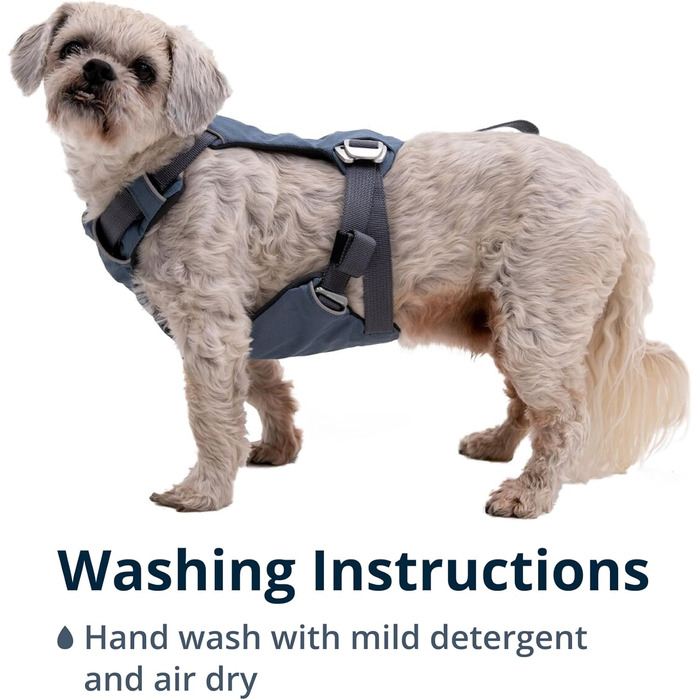 Шлейка виготовлена з міцних плетених ременів, адаптованих до альпіністських технологій, для надзвичайно міцної підтримки. Також використовуються м'які грудна та живіт панелі для комфорту собаки.