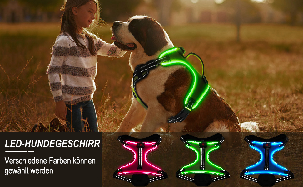 - 4 ПОВНІСТЮ РЕГУЛЬОВАНІ ПРЯЖКИ - Bpawser LED Harness Регульована шлейка для собак має 4 легко регульовані ремені, які ви можете використовувати для створення ідеальної посадки для вашої собаки. Найкраще залишити для собаки простір на ширині двох пальців.