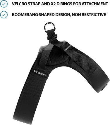 Опис Шлея для собак BullyBillows Boomerang, легка, не сковує рухів, зручна у використанні, на липучках, чорна, розмір S, преміум-якість