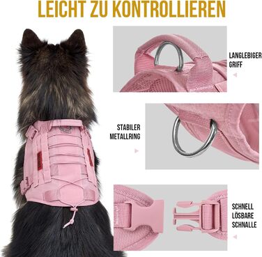 Тактична шлейка для собак OneTigris FIRE Watcher, 1000D нейлон, рожевий, розмір L, з ручкою та 2 D-кільцями, без ривків, MOLLE система, для службових і домашніх тварин