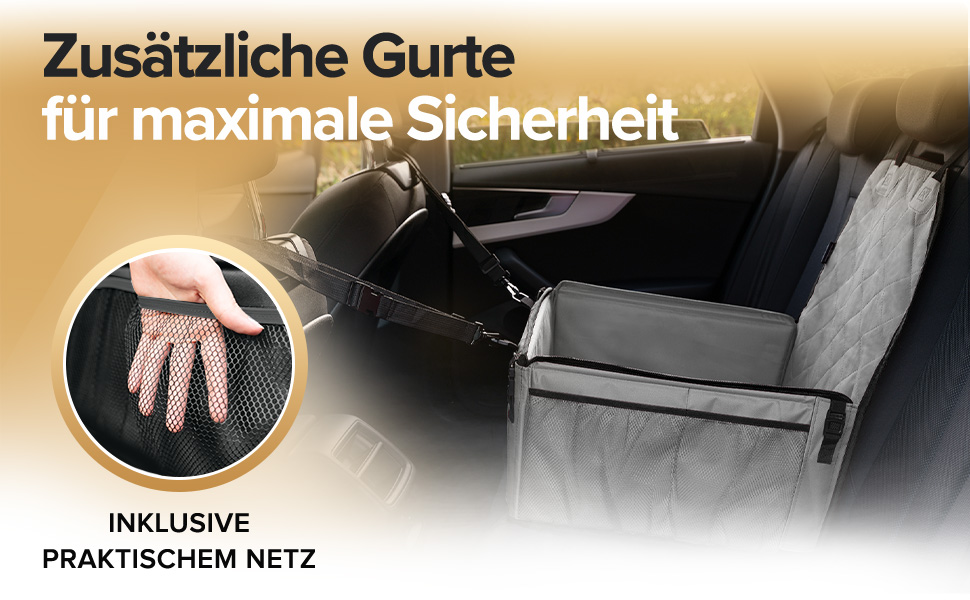 Автокрісло HELDENWERK оснащене ременями для фіксації до сидіння автомобіля та ременями для фіксації собаки всередині, що забезпечує додаткову безпеку під час гальмування та повороту. Однак, ми рекомендуємо завжди пристібати собаку ременем безпеки для собак.