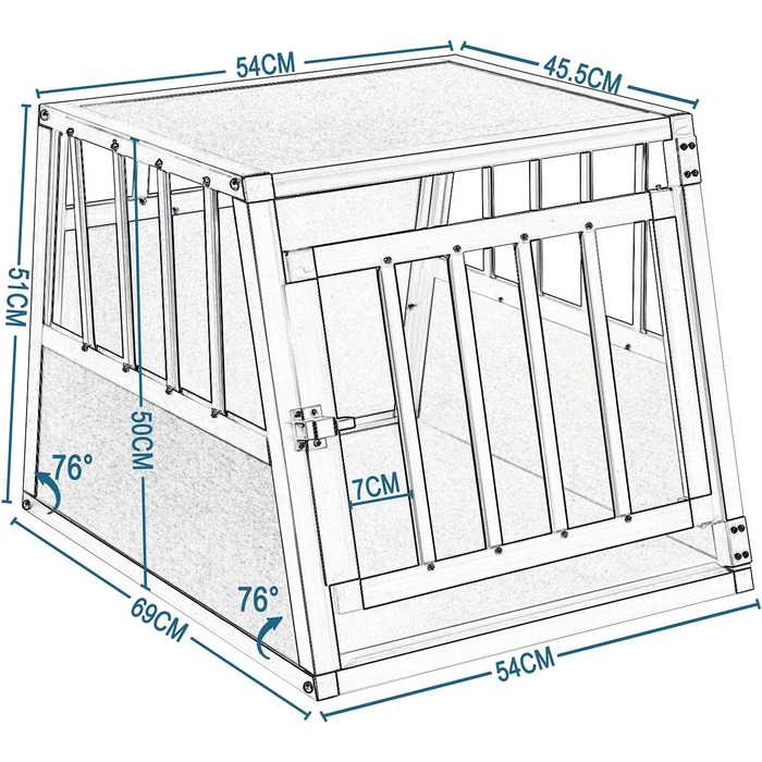 Опис Алюмінієва транспортна клітка для собак EUGAD, переноска для авто, для малих і середніх порід (французький бульдог, бігль, тер'єр, такса, сіба-іну), 69x50x54 см, модель 0054HT