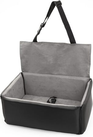 Опис Автокрісло для собак середніх і великих порід, з чохлом, штучна шкіра та велюровий замінник, для заднього або переднього сидіння, чорний/сірий, розмір M (60x41 см)