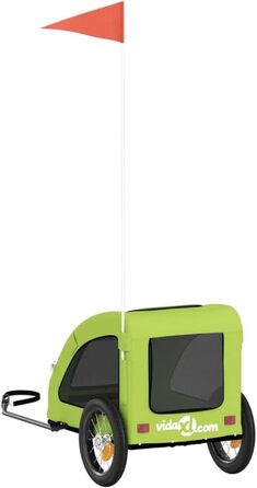 Опис Велосипедний причіп для собак vidaXL, рефлектори, прапорець, перевезення домашніх тварин, максимальне навантаження 30 кг, зелений, оксфордська тканина, сталь