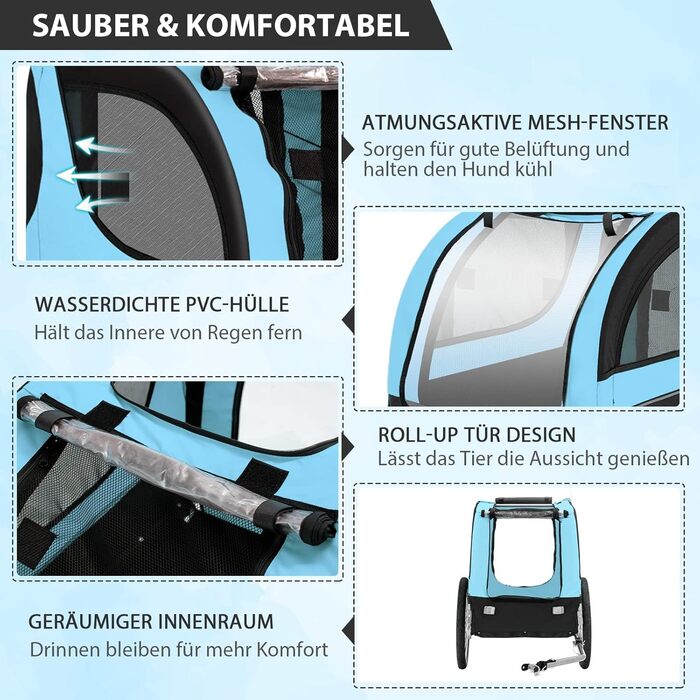 Причіп розроблений спеціально для собак, але його можна використовувати для транспортування інших тварин, якщо вони комфортно в ньому розміщуються і не перевищують максимальну вагу в 40 кг.