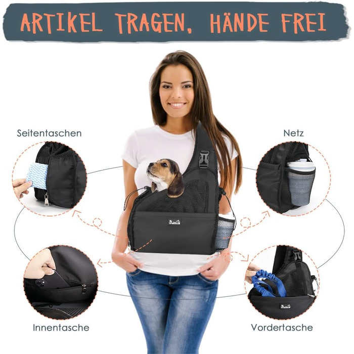 - Велика місткість для зберігання--- кишені на блискавці спереду та всередині слінгу можна наповнити ласощами, сумками, гаманцем, мобільним телефоном або брелоком. Кишеня збоку сумки призначена для пляшок з водою. З цими сумками у вас фактично вільні руки, коли ви берете своїх собак або кішок на щоденні прогулянки, пригоди на вихідні та інші види активного відпочинку.