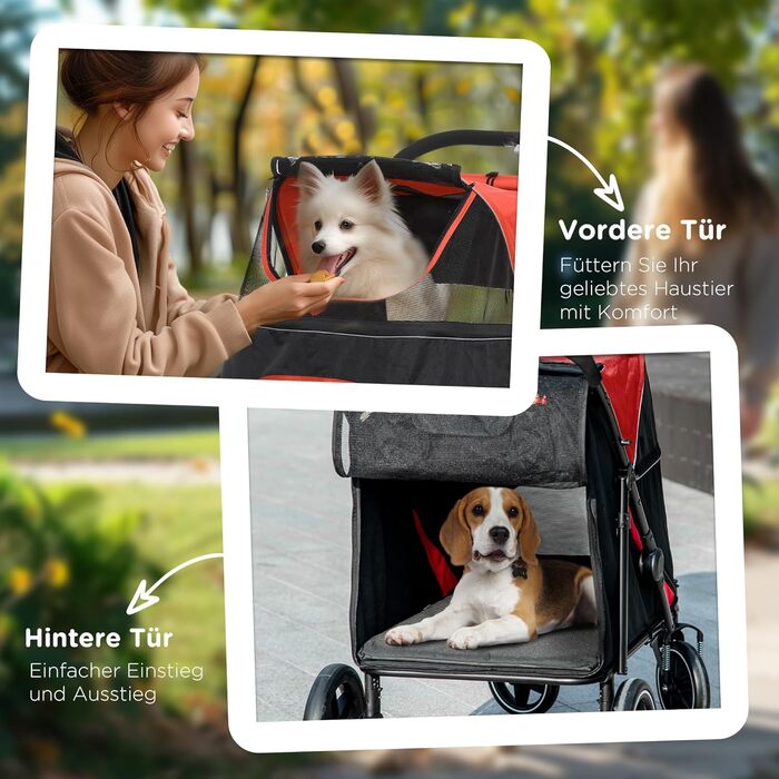 Опис Візок для собак PawHut з подушкою, складаний візок-тролей для великих і середніх собак та котів, з сітчастим вікном, ременями безпеки, кишенею, з оксфордської тканини, червоно-чорний