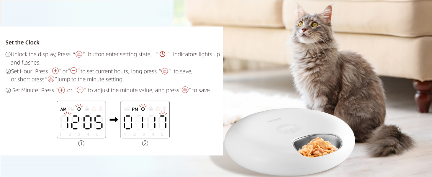 - Управління через додаток WIFI: Сплануйте графік годування до 5 прийомів їжі з функцією щоденної пам'яті. Діліться пристроєм з іншими користувачами та відстежуйте записи про годування (лише мережа WIFI 2.4 ГГц).