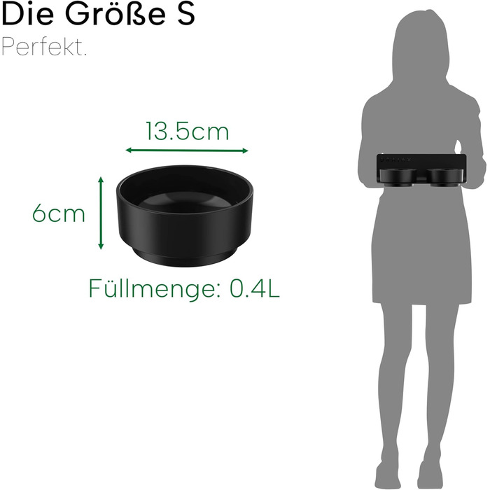 Опис Керамічна миска DRAIAX ElegantFeed S для котів і малих собак, чорна, матова зовні, глянцева всередині