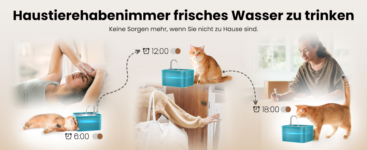 - Велика місткість 2,2 л: Фонтан для кішки може забезпечити вашого вихованця питною водою приблизно на 7 днів, тому він залишається зволоженим протягом дня, і ви можете подорожувати без турбот.