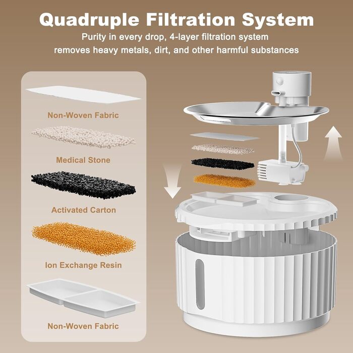 Цей котячий фонтан з нержавіючої сталі – це не просто джерело води, це інвестиція у здоров'я та щастя вашого улюбленця. Завдяки продуманій конструкції та ефективній фільтрації, він забезпечує оптимальні умови для пиття та сприяє поглинанню достатньої кількості води, що особливо важливо для профілактики захворювань сечовивідних шляхів.