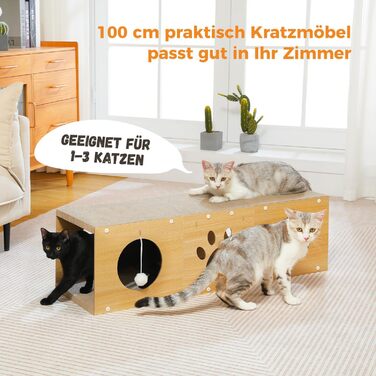 - Когтеточка та тунель: Завдяки своїй конструкції, ця когтеточка також служить чудовим котячим тунелем для захопливих ігор у хованки, особливо якщо у вас кілька котів.