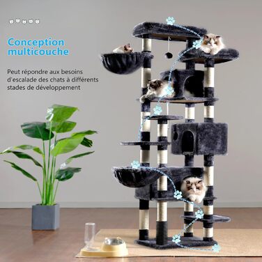 Забезпечте вашому улюбленцю максимум комфорту та розваг з багатоярусним котячим комплексом Hey-brother MPJ035-MG! Ця висока кігтеточка (188 см) стане чудовим доповненням до вашого дому та забезпечить вашому котику місце для ігор, сну та точіння кігтів.