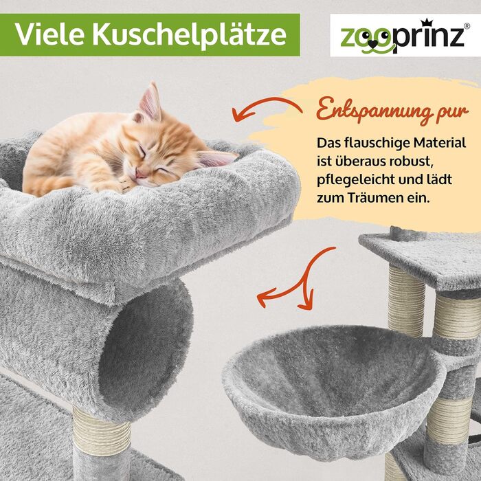 - ВІДПОЧИНОК Густе котяче дерево з великим котячим гамаком, котячою печерою, зоною для лежання та ліжками Меблі з м'яким плюшевим чохлом ідеально підходять для обіймів. Рай для великих і маленьких міні кішок