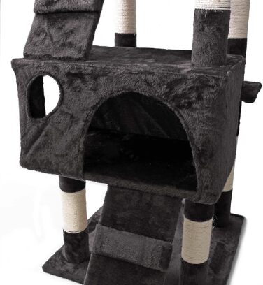 Опис Котячий дряпак Wiltec 170 см, чорний, з сизалем, з ігровими платформами та будиночками для котів