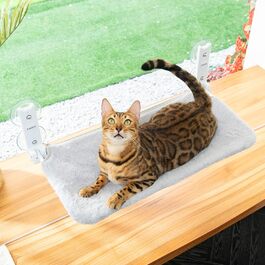 - Високоякісні матеріалиШезлонг для кішки з подушкою мають розміри 52 x 30 см (20.4 x 11.8 дюймів). Рама виготовлена з нержавіючої сталі замість пластику, а великі присоски міцно утримують гамак cat window на місці, він може витримувати до 20 кг/44 фунти