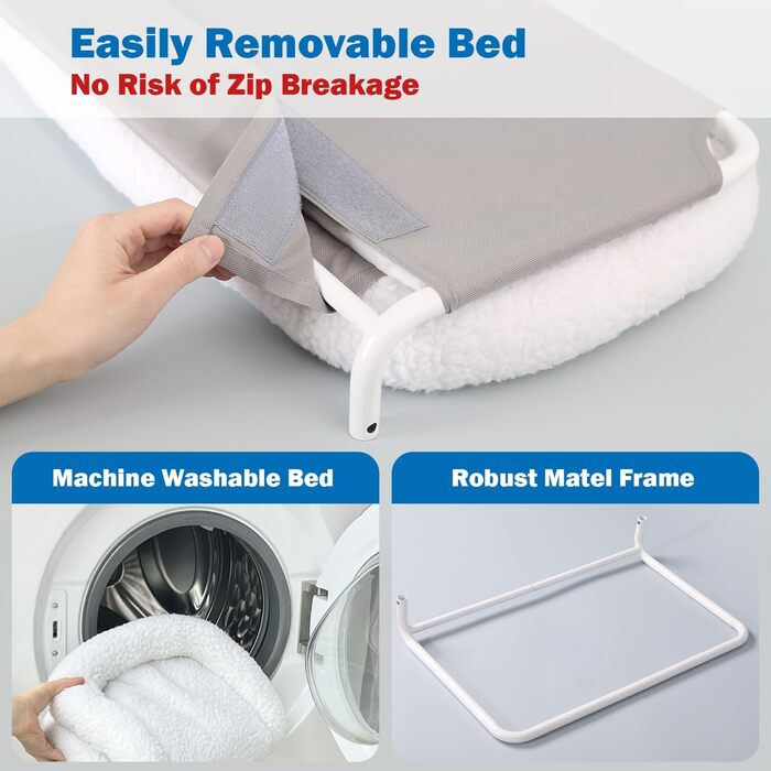 - Ліжко, яке можна прати в пральній машині вбудоване в пухнасте ліжко з високоякісних матеріалів. Просто покладіть його в пральну машину для швидкого освіження, захистіть ліжко від запахів і бруду, а також створіть затишне та гігієнічне місце для котів, щоб розслабитися та насолодитися краєвидом. (Розмір ліжка: 55,9 х 32,6 см)