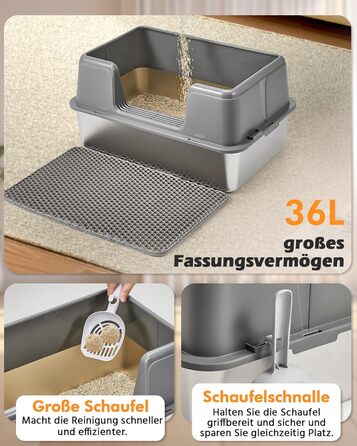 Котячий туалет Papettly XXL виготовлений з високоякісної нержавіючої сталі. Це забезпечує гігієнічність, легкість у догляді та стійкість до корозії.