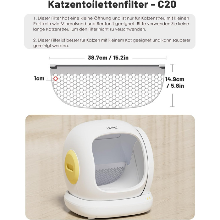 Туалет C20 підходить для кошенят, але важливо переконатися, що вони можуть легко забиратися всередину та виходити з нього. Якщо кошеня дуже маленьке, можливо, йому буде складно використовувати туалет до певного віку.