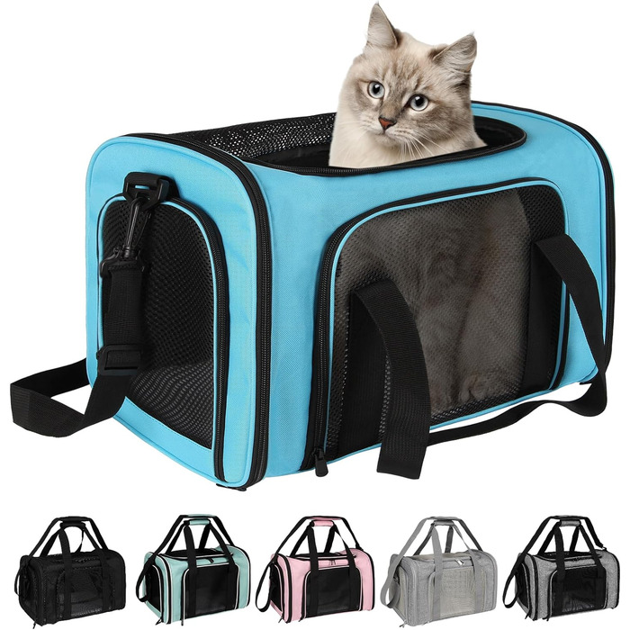 Ця м'яка сумка-переноска для кішок і собак має 4-сторонні дихаючі віконця.