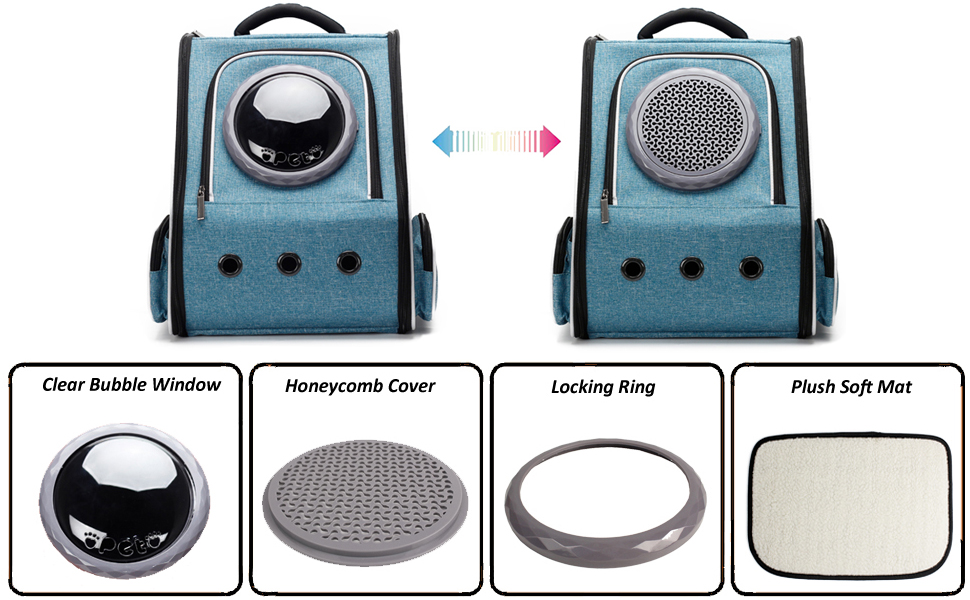 - Сумка для перенесення рюкзака Pet Bubble: прозора бульбашка забезпечує прозорий огляд для цуценят і кішок, щоб легко витягнутися з вікна, краще насолоджуватися сонцем і природою. Підходить для цуценят зростом до 6,8 кг або 8,2 кг, кішок і товстих кошенят.