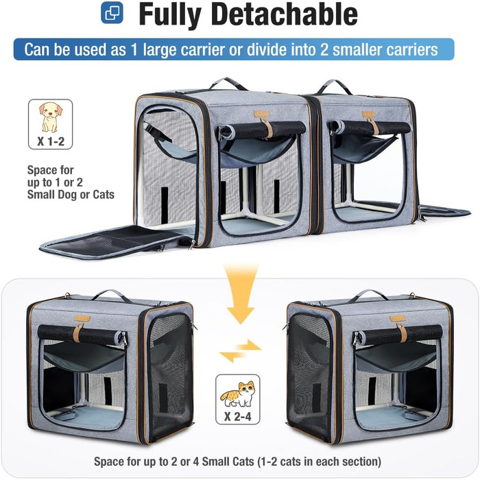 - 3 способи використання: Ви можете використовувати переноску як два окремі відсіки, об’єднати їх в один великий простір або навіть розібрати на два окремі транспортери для тварин.
