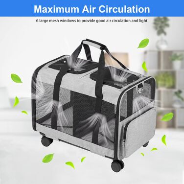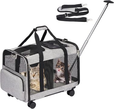 Транспортна сумка FASNATI з двома відділеннями та знімною тележкою для котів і собак, переноска на колесах для двох тварин, добре вентильована, ідеальна для подорожей, прогулянок і кемпінгу, сіра