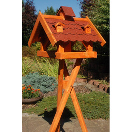 Опис Велика годівниця для птахів XXL з бітумною черепицею та віконцями, вибір кольору даху, модель V19, темна, зі стійкою