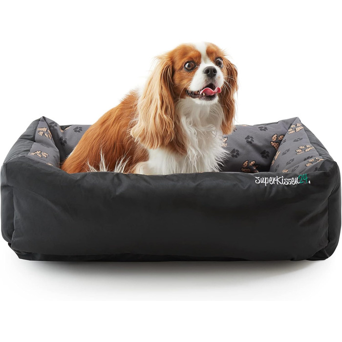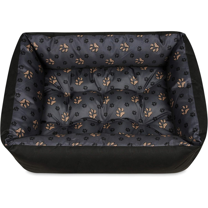 Лежак для собак SuperKissen24 XL, чорний і сірий, для малих, середніх і великих порід, праний, з принтом лапок