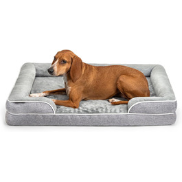 Опис Ортопедичне ліжко для собак lionto з високим бортиком, 89x63x17 см, міцна лежанка з м'яким фланелем, знімний та праний чохол, не ковзає, для малих і великих собак та котів, сіре