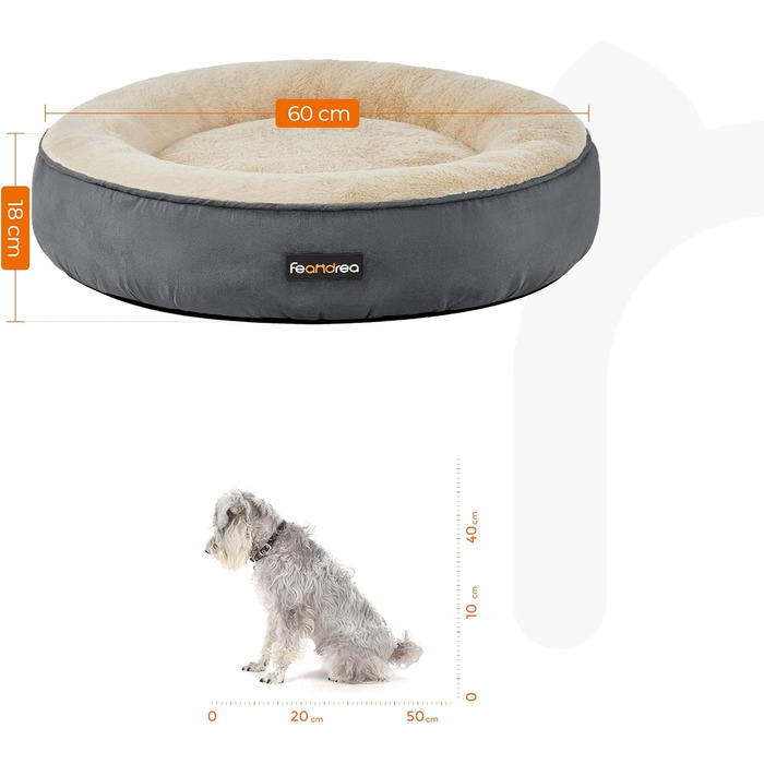 Ліжко Feandrea Donut з діаметром 60 см найкраще підходить для собак середніх розмірів та котів. Для великих собак ми рекомендуємо розглянути більші моделі ліжок.